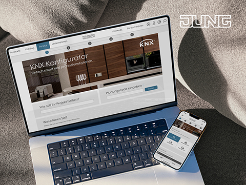Mit dem JUNG KNX Konfigurator planen Sie schnell und einfach mit einer herstellerunabhängigen und professionellen Gebäudetechnik. Am Ende der Planung erhalten Sie u.a. ein Raumbuch, Stücklisten und Preise, um ohne großen Aufwand ein Angebot zu erstellen. Alternativ erhalten Sie direkt von Ihrem Kunden einen Planungscode zur Fertigstellung. Über den JUNG Service „Fachpartner finden“ können Sie vom Bauherrn direkt im Konfigurator gefunden werden. Diesen Service bietet JUNG für Fachpartner kostenlos an.