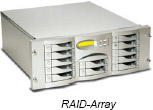Die einzelnen Laufwerke eines Arrays können für zusätzliche Speicherkapazität, höhere Zugriffsgeschwindigkeit oder größere Redundanz genutzt werden, je nach der für das Array definierten RAID-Ebene. Darüber hinaus können die RAID-Arrays selbst als Module auf einer höheren Ebene betrachtet werden, wobei jedem RAID-Array eine andere Anwendung zugeordnet werden kann. - Rasche Anpassung an die Umgebung.
