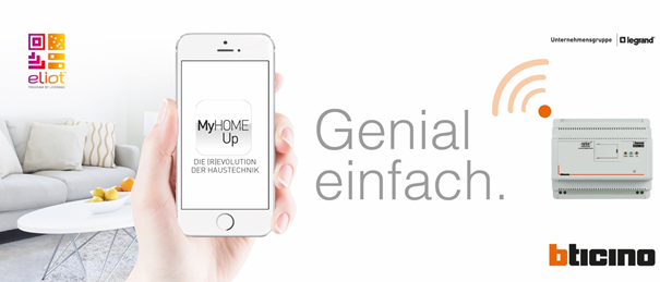 Das MyHOME_Up-System ist genial einfach: MyHOME Geräte einrichten, verbinden und mit einem Smartphone/Tablet (iOS/Android) und der Gratis-App „MyHOME_Up“ anwenden. Alle Produkte werden einfach über eine 2-Draht-Busleitung miteinander verbunden. Anschließend lassen Sie sich von der App durch die Anlagen-Konfiguration führen.