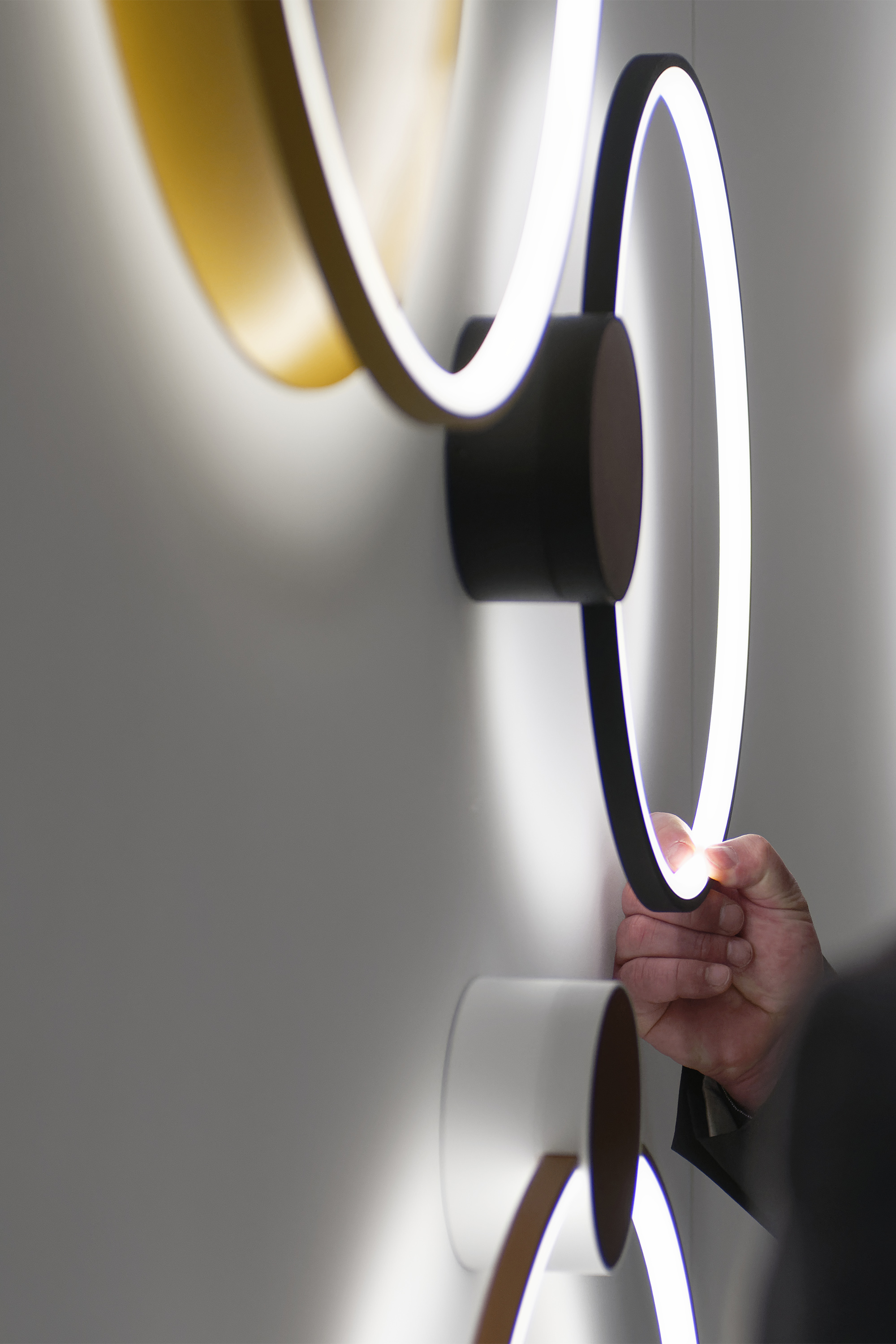 Dezente Lichtquelle und Wandskulptur gleichermaßen sind die grazilen Ringleuchten für den Innenraum.
