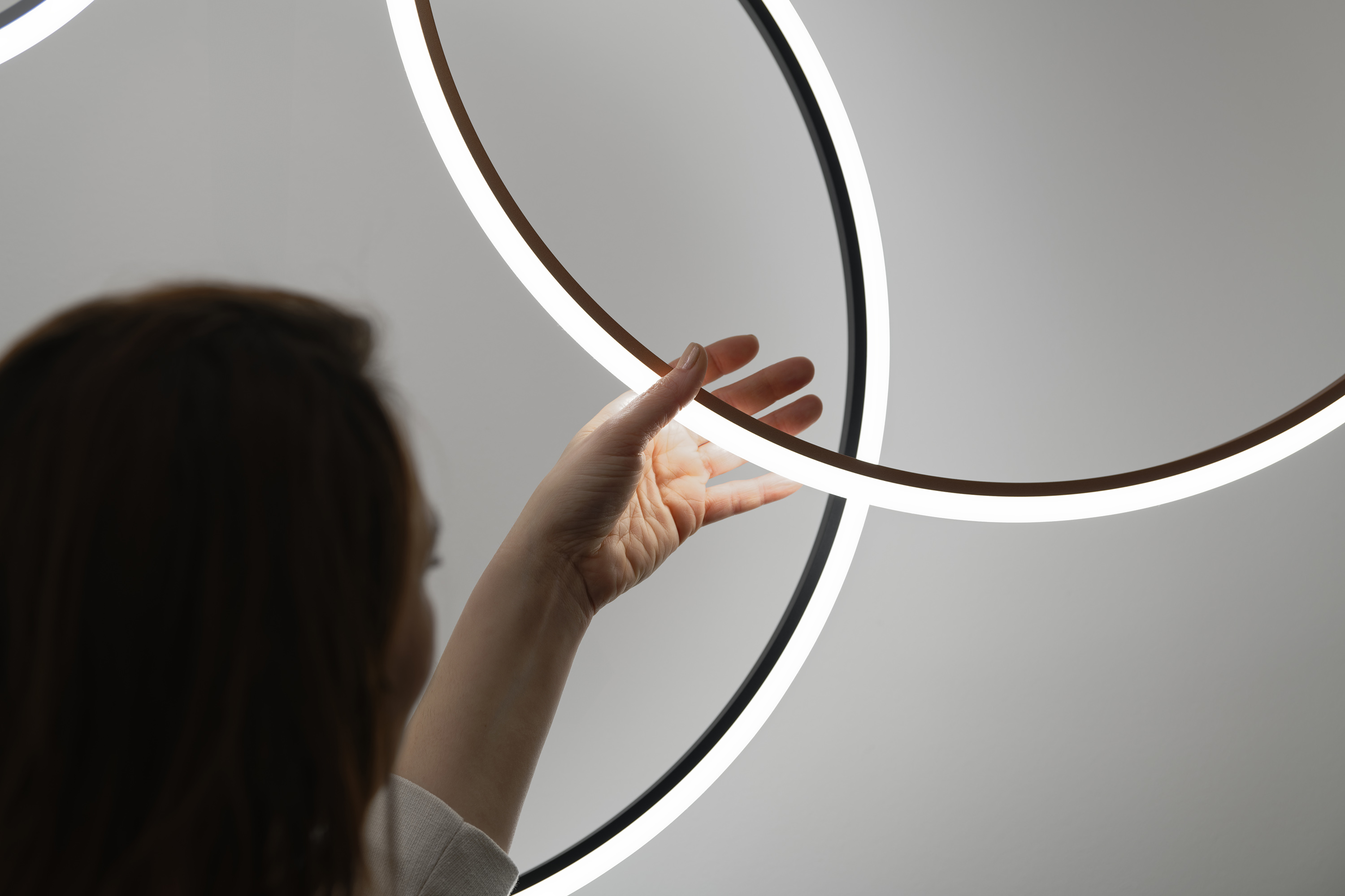 Die Leuchten verleihen der Innenraum- und Flächengestaltung mit Licht eine neue Leichtigkeit. LED-Module auf Aluminiumprofilen bilden die ringförmigen Lichtquellen. Ein weißer Diffusor aus alterungsbeständigem Silikon sorgt für die gleichmäßige freistrahlende Lichtstärkeverteilung.