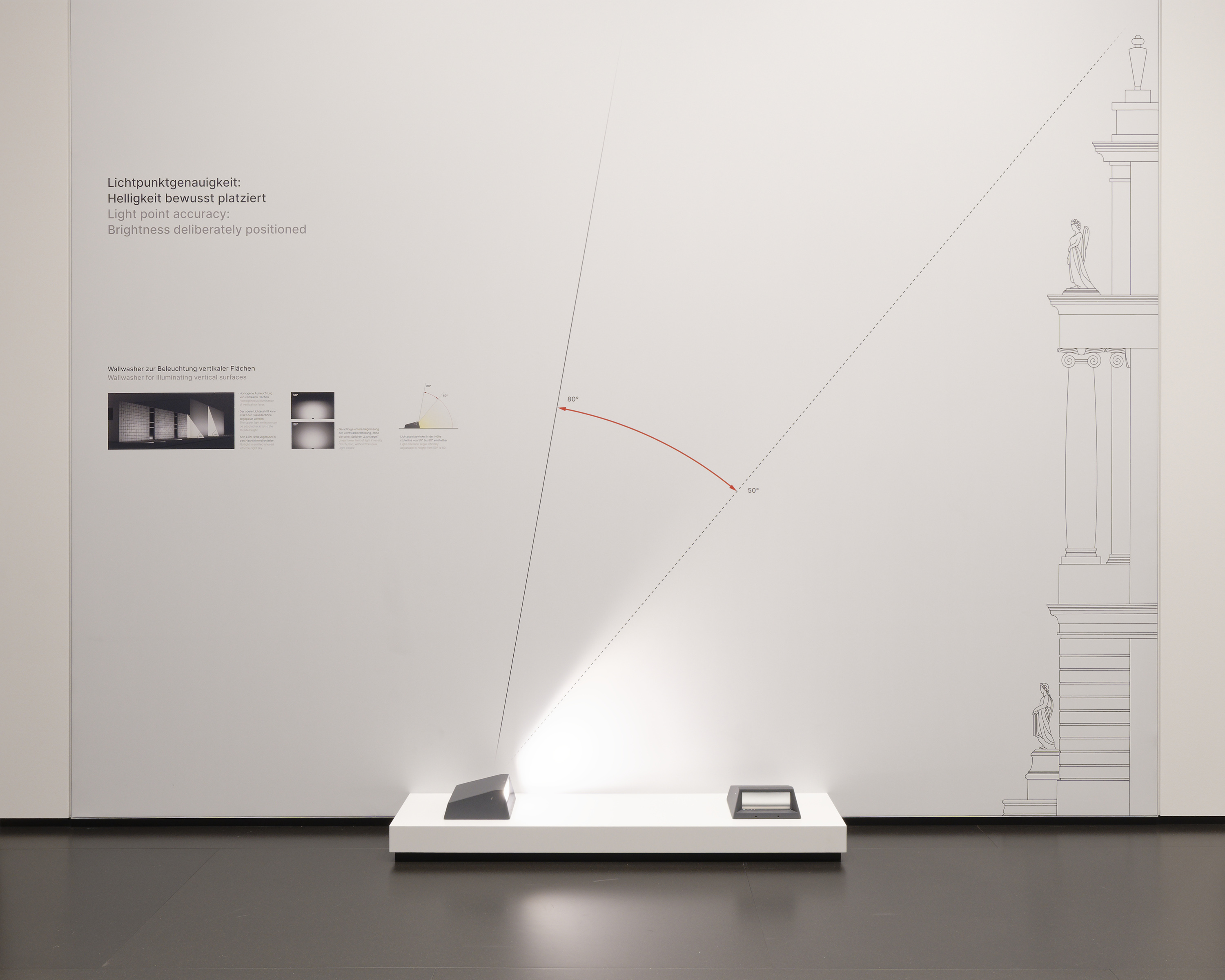 Neue Bodenaufbauleuchten dienen der homogenen Ausleuchtung von vertikalen Flächen – sie sind in der Lage, Fassaden vom Sockel bis zur Dachtraufe zu illuminieren. Dabei kann der obere Lichtaustritt exakt der Fassadenhöhe angepasst werden, ohne dass Licht ungenutzt in den Nachthimmel emittiert wird. Die untere Begrenzung der Lichtstärkeverteilung ist geradlinig, ohne die sonst üblichen „Lichtkegel“ von Bodeneinbauscheinwerfern. Der deutlich geringere Installationsaufwand gegenüber Einbauleuchten reduziert die Installationskosten und bietet ein hohes Maß an Flexibilität. Die Leuchten werden einfach mit einer Montageplatte auf dem Untergrund befestigt.