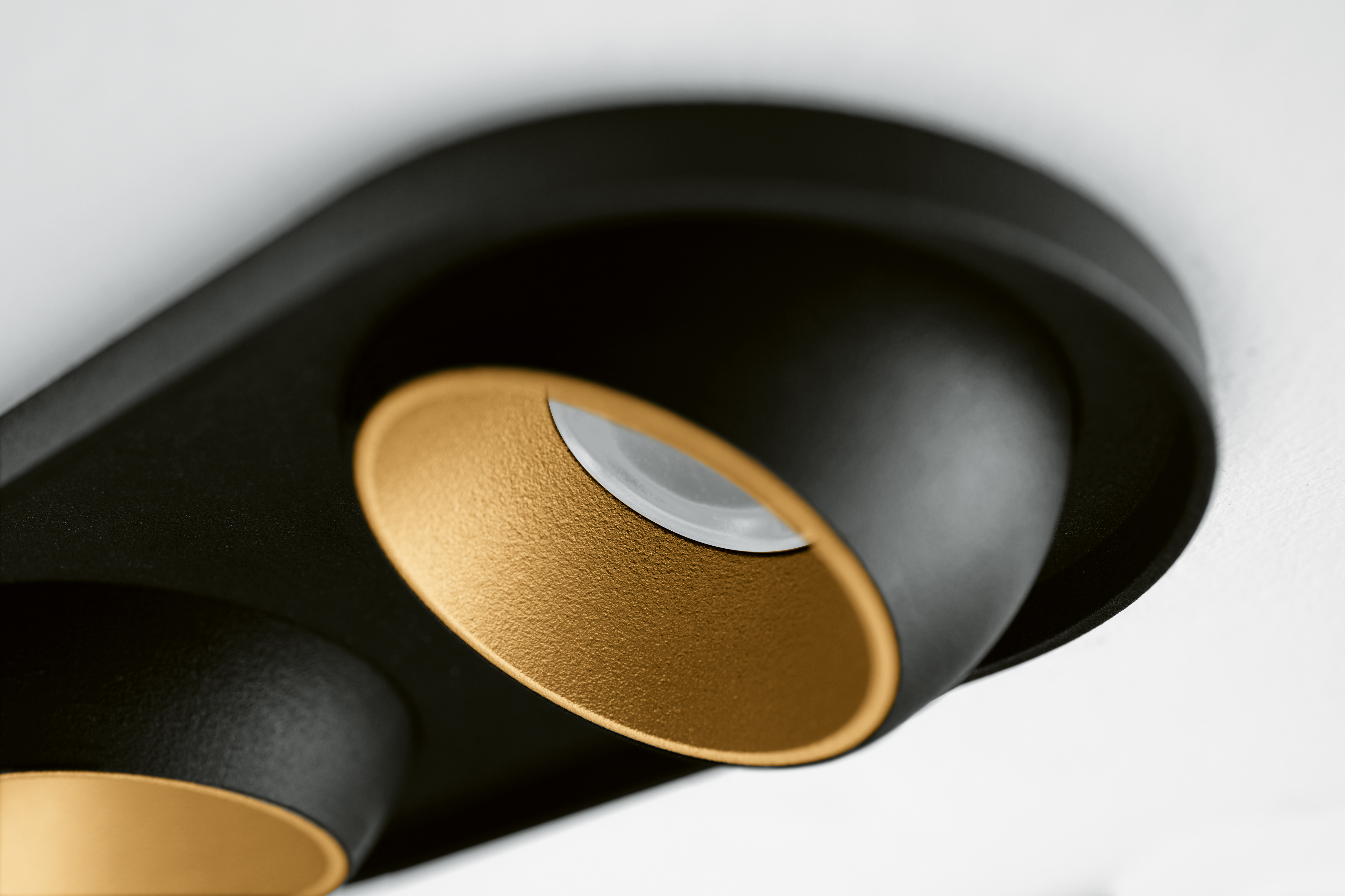 Die Deckeneinbauleuchten des STUDIO LINE Programms zeichnen sich durch ihre Verstellbarkeit aus und ermöglichen dadurch eine separate Ausrichtung. Jede Leuchte kann einzeln nach den persönlichen Bedürfnissen und Anforderungen eingestellt werden, um eine maßgeschneiderte Beleuchtungslösung zu schaffen. Die unterschiedlichen Farbkombinationen erlauben die Abstimmung auf das jeweilige Interieur.